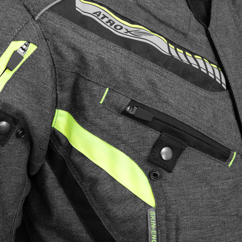 La seguridad es primordial, por eso la ATROX AT-2141 incorpora reflectores en puntos clave para una mayor visibilidad en la oscuridad. Su diseño funcional incluye un cuello de neopreno para mayor comodidad, mangas y cintura ajustables para un ajuste perfecto, y una bolsa interna para guardar tus objetos personales. Los conectores largos y cortos te permiten unir la chamarra con tus pantalones, creando un conjunto de protección completo. Con la ATROX AT-2141, cada viaje es una experiencia más segura y placentera.