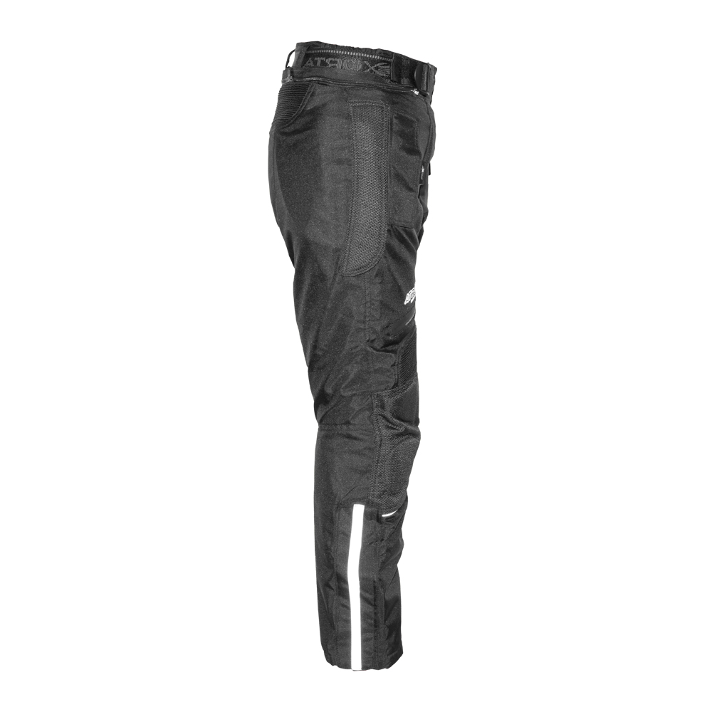 Pantalón para Dama ATROX CE-2681 Cordura Negro ofrece la combinación perfecta de protección, confort y estilo, pensado para motociclistas que exigen seguridad y comodidad. Cuenta con certificación EN 170902-3:2020 y protecciones removibles en material EVO aprobadas CE Nivel 1 & 2, ubicadas estratégicamente en rodillas y cadera.